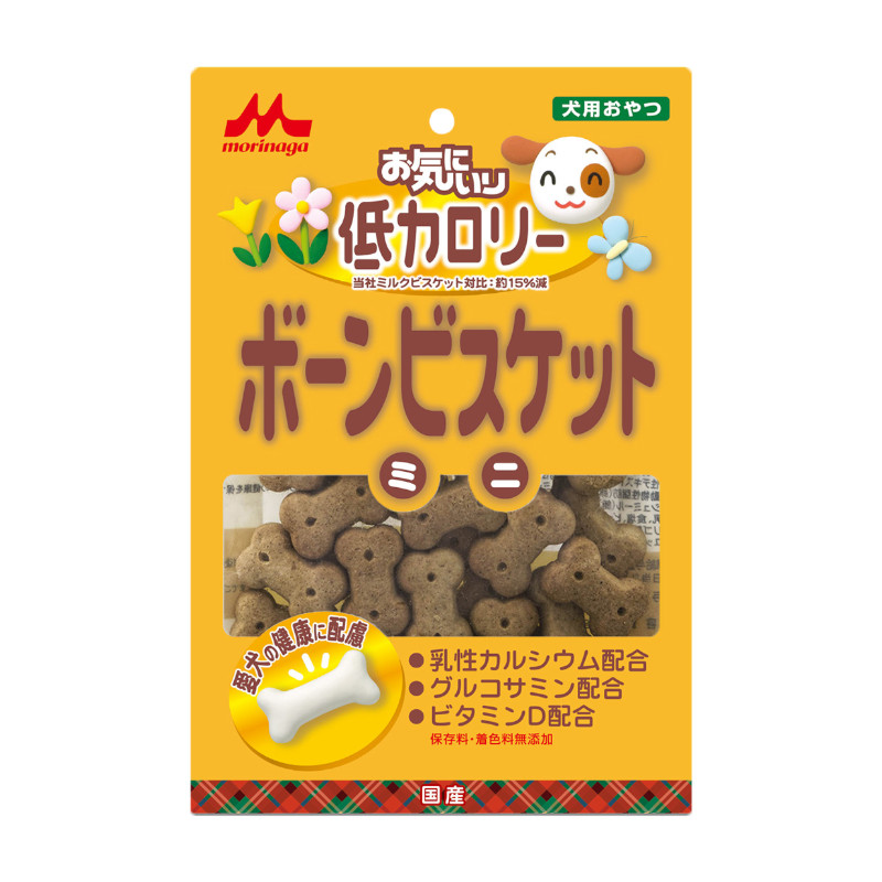 カロリーを控えて乳性カルシウムやグルコサミンを配合した、小粒タイプのビスケットです。