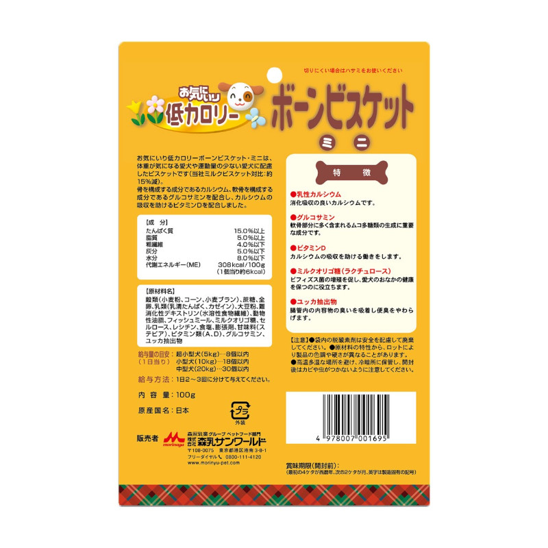 体重が気になる愛犬や運動量の少ない愛犬に配慮したビスケットです(当社ミルクビスケット対比:約15%減)。
