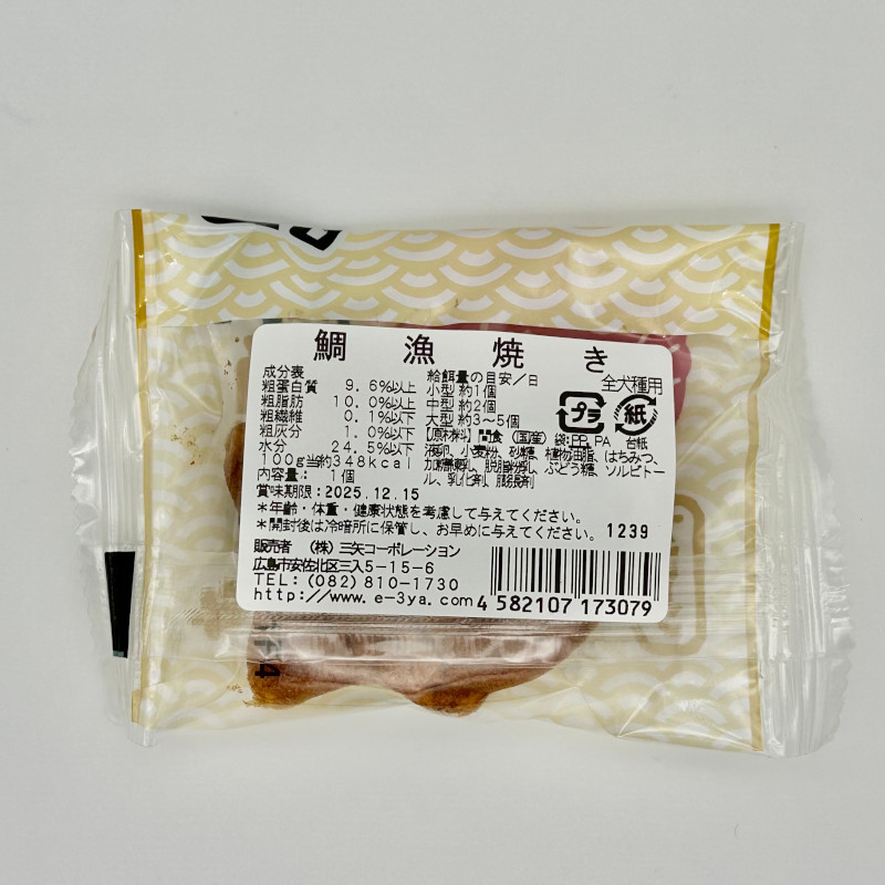 その他 | 個体の大きさに応じて、丸のみしない様に適度な大きさにちぎってお与え下さい。 給餌量の目安/日 小型犬:1個 中型犬:2個 大型犬:3~5個 |