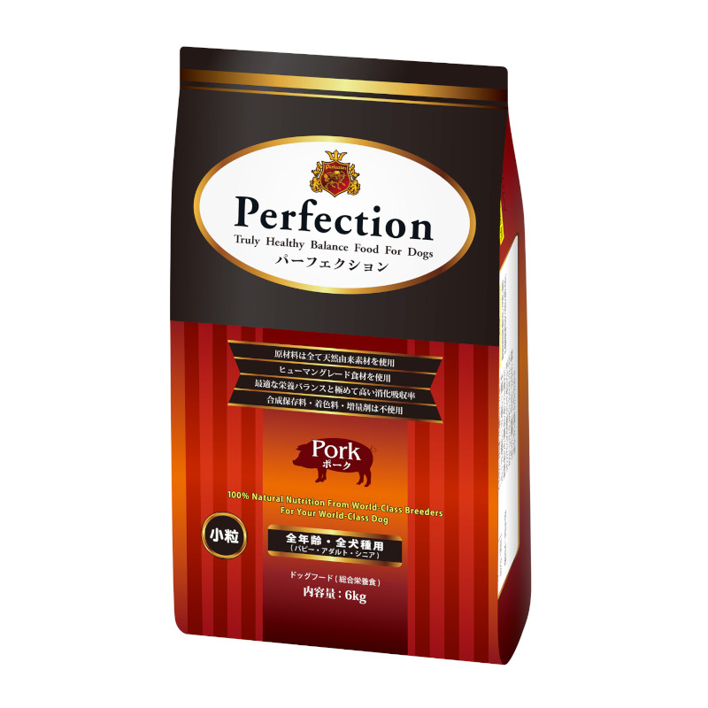 ポークは特にタンパク質の吸収率がよく体作りにおすすめです。チキンは栄養バランスがよく健康な体調と体型の維持におすすめです。サーモンは抗酸化成分が豊富で皮膚被毛のケアにおすすめです。パーフェクションは保証成分値が各種同数値の設定で、フードローテーションも簡単でおすすめです。