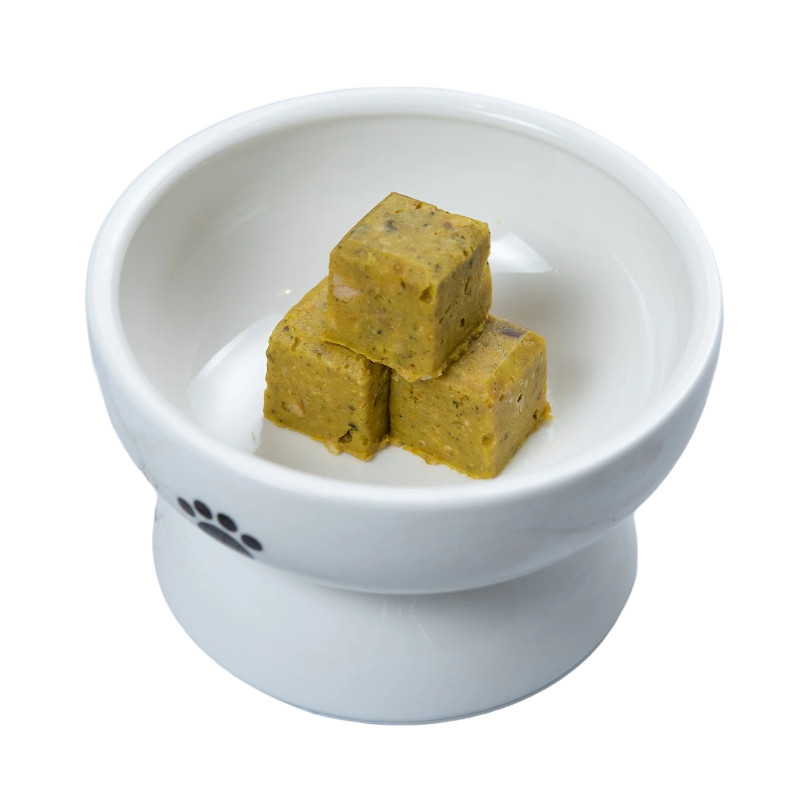 素材 | 【原材料】 国産豚肉(豚モモ・豚ロース・豚肩ロース・豚レバー)・かぼちゃ・さつまいも・ブロッコリー・ごま・昆布・かつおぶし・植物油・ビタミン・ミネラル 【成分】 粗タンパク質16.6%以上・粗脂肪4%以上・粗繊維0.2以下・粗灰分1.2以下・水分74.3以下 【エネルギー】 100gあたり/150kcal 1CUBEあたり/22.5㌍ |
