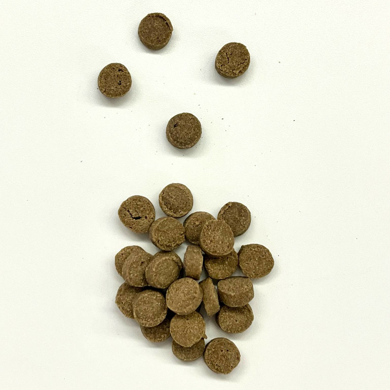 | 注意事項 | ・適正給与量には個体差があります。体重変化等を観察しながら給与量を加減してください。 ・特にシニア犬や避妊・去勢後は太りやすい傾向にありますので、愛犬のコンディションに合わせて給与量を調整してください。 ・他のフードからの切り替えは、従来のフードに本商品1割くらいを混ぜることからはじめ、徐々に本商品の量を増やしてください。完全に切り替えるまで2週間ほどかけることをおすすめします。 ・新鮮な水をいつでも飲めるようにしてください。 ・給与中に異常が見られた場合は、ただちに給与を中止し、かかりつけの獣医師にご相談ください。 ・天然成分を使用しているため、色調に差が見られることがありますが、品質に影響はありません。 ・定期的に健康診断を受け、獣医師の診断・指導を受けてください。 ・品質保持のため、鮮度保持剤を封入しておりますが食べられません。 |