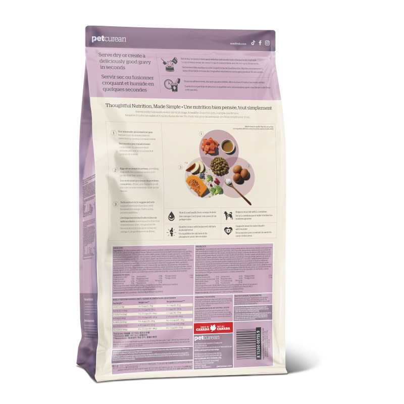 カナダ食品検査庁(CFIA)の検査基準で人間用の食材グレードをクリアした新鮮な魚とオイルに加え、栄養と食物繊維豊富なキヌアなどの「古代穀物」も使用しました。