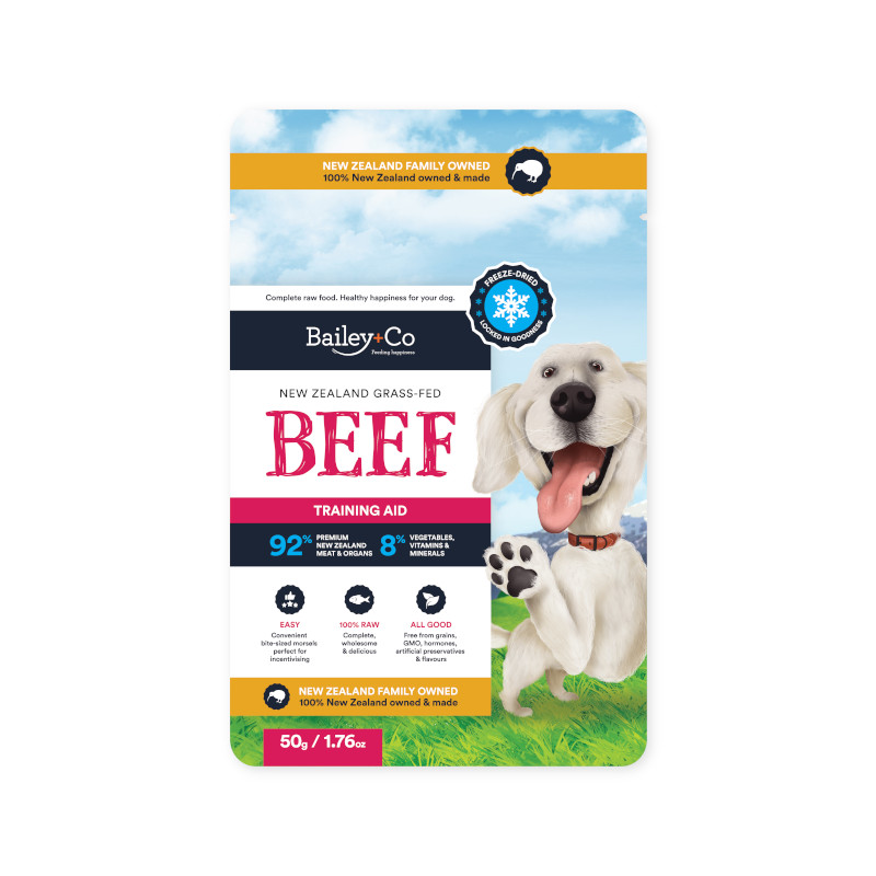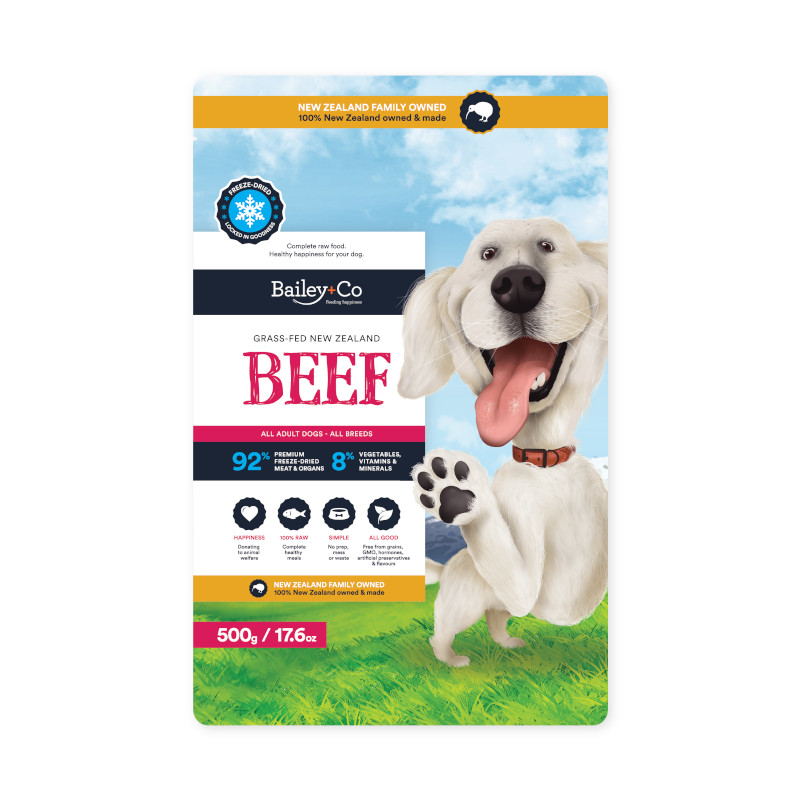 フリーズドライで手間がかからず主食として、またBailey+Co ボーンブロスと混ぜたり、トッピングとして与えたりするだけで、愛犬に毎日の幸せを与えられます。
