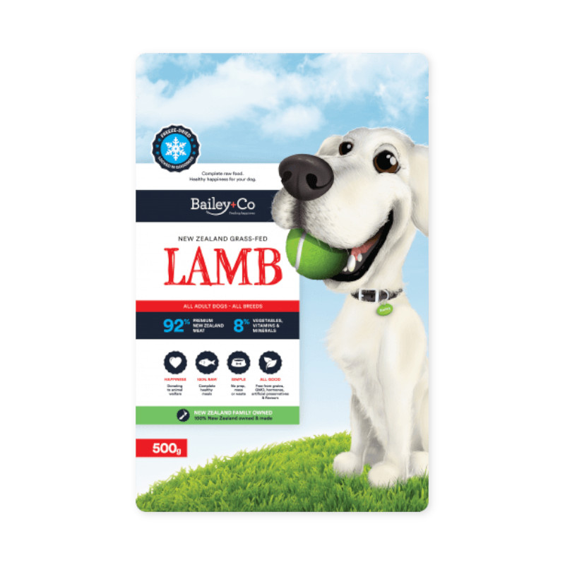 使用しているラム肉はすべてニュージーランド産の牧草飼育ラム肉で、抗生物質やホルモン剤を含まず、ペットにとって美味しく栄養価の高いものです。