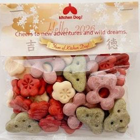 | 素材 | 【原材料】 薄力粉、なたね油、ビーツパウダー、ココナッツオイル、フラクトオリゴ糖、紫芋パウダー、大麦若葉、ブルーベリー、いちご、パセリ 【栄養成分(100g中)】 タンパク質 9.0% 脂質 5.3% 繊維 2.7% 灰分 0.5%(ビーツパウダー0.83%) 【エネルギー】 370kcal/100g |
