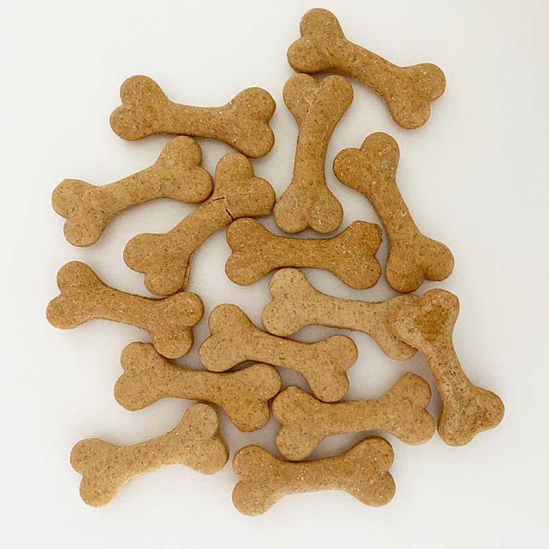 とてもシンプルな素材だけで作りました。色々な素材が入っていないだけに、小麦以外のアレルギーを持っている、わんちゃんにも喜ばれます。