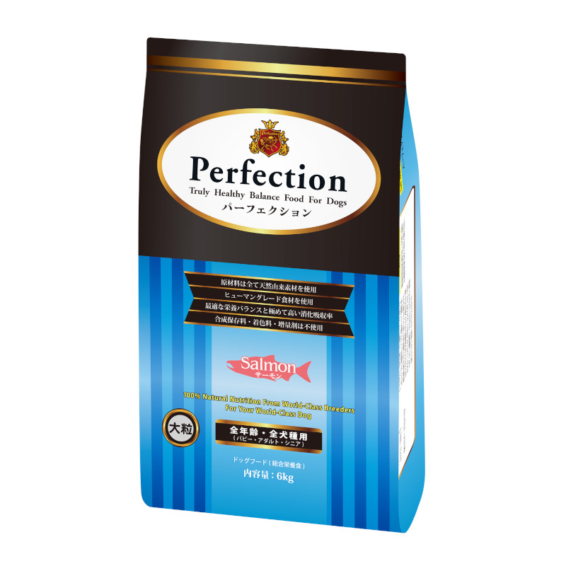 ポークは特にタンパク質の吸収率がよく体作りにおすすめです。チキンは栄養バランスがよく健康な体調と体型の維持におすすめです。サーモンは抗酸化成分が豊富で皮膚被毛のケアにおすすめです。パーフェクションは保証成分値が各種同数値の設定で、フードローテーションも簡単でおすすめです。