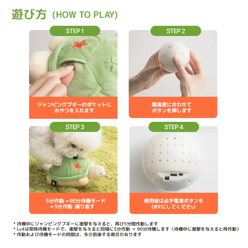 | その他 | 【付属品】 ノーズワークボール、プレイボール、USBケーブル 【充電に関して】 カバーを外したり、プレイボールを取り外さなくてもそのまま充電可能です。 ・充電までの時間:3~4時間 ・待機モードでの最大稼働時間:12時間 ・Lv.1の場合の最大稼働時間:3時間 |