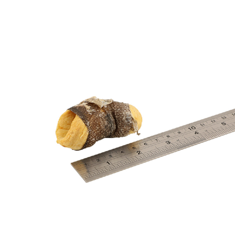 | 素材 | 【原材料】 アップル:67%、ホワイトフィッシュ皮:33% 【保証成分値】 粗たんぱく質:25%以上、粗脂肪:0%以上、粗繊維:6.05%以下、粗灰分:5%以下、水分:28%以下、オメガ3脂肪酸:0.13%、オメガ6脂肪酸:0.03% 【代謝エネルギー】 27.07kcal/10g |