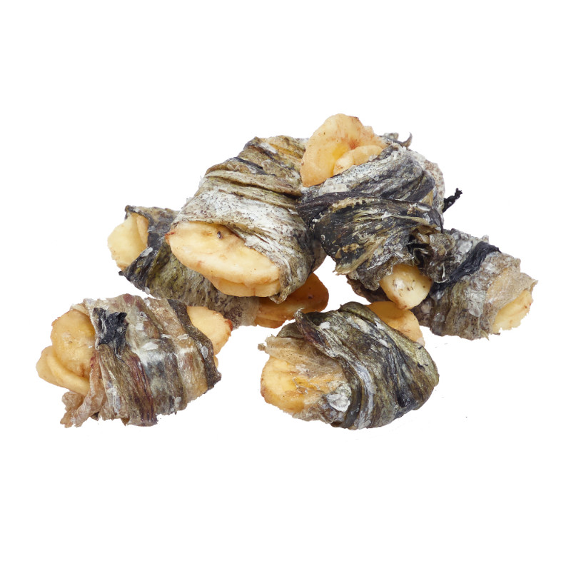 カリウムなどビタミン&ミネラル類が非常に豊富なバナナをホワイトフィッシュの皮で巻いたシンプルなトリーツ