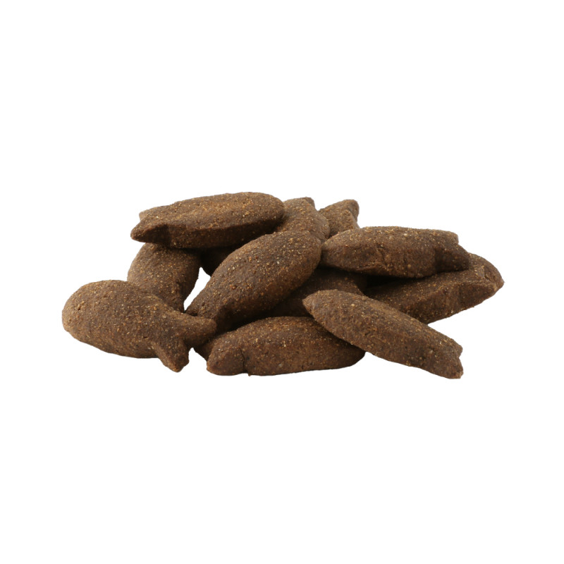 新鮮なサーモンとサバを原材料に使用したこのトリーツには健康な腸内細菌を増やすためのプレバイオティクスMOSとFOSを配合しています。また、クリルミールを配合しており、オメガ3脂肪酸、アスタキサンチンが豊富なコンディショニングトリーツです。