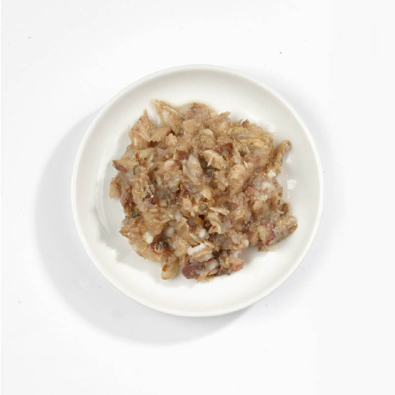 イワシベースにサバと栄養抜群のフィッシュスープを含めた贅沢なウェットフード