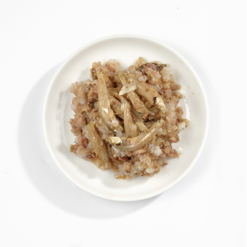イワシベースにアンチョビと栄養抜群のフィッシュスープを含めた贅沢なウェットフード