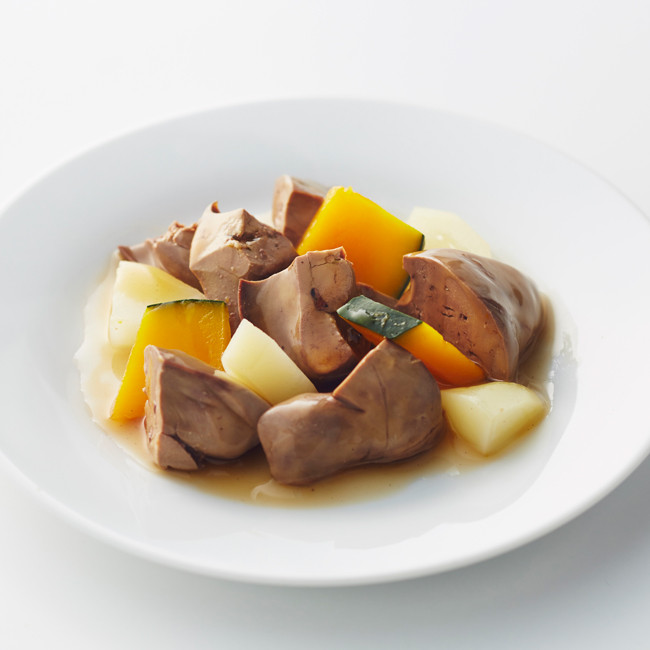 滋養に良い鶏の肝に、かぼちゃ、馬鈴薯が入ったスープです。59種類の栄養素をもつユーグレナ配合。