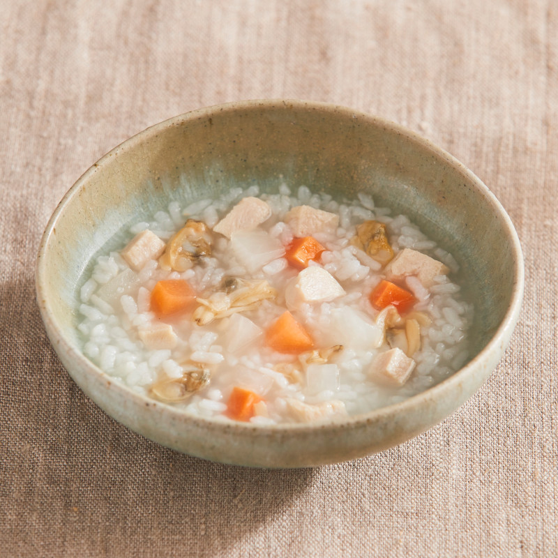 | 素材 | 【原材料】 米、あさり、鶏、ニンジン、大根、かつおぶしエキス、ユーグレナグラシリス 【成分】 粗タンパク質2.9%以上、粗脂肪0.4%以上、粗繊維0.3%以下、粗灰分0.4%以下、水分86.4%以下 【エネルギー】 49Kcal |