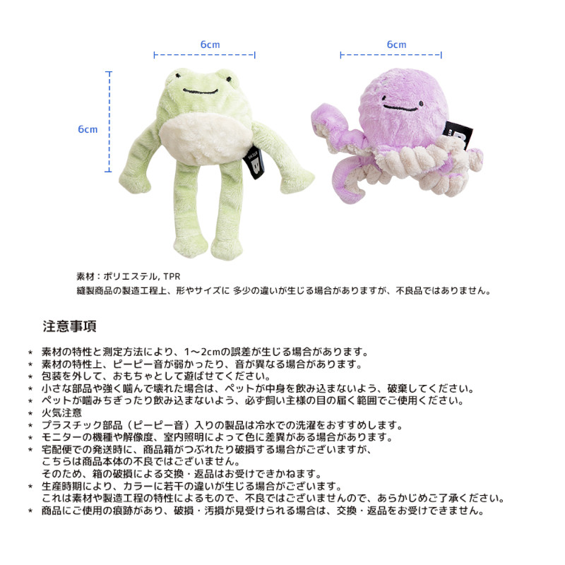 | サイズ | カエル:180*130*60mm タコ:200*130*60mm ボールのみ:60*60(TPRボールサイズ基準) |