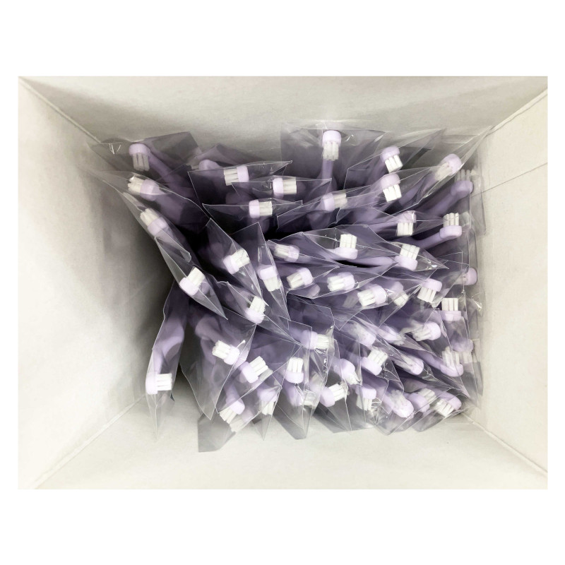 ラベンダー:コンパクトヘッドで奥まで届く。扱いやすいミニサイズのラベンダーカラー業務用歯ブラシ。