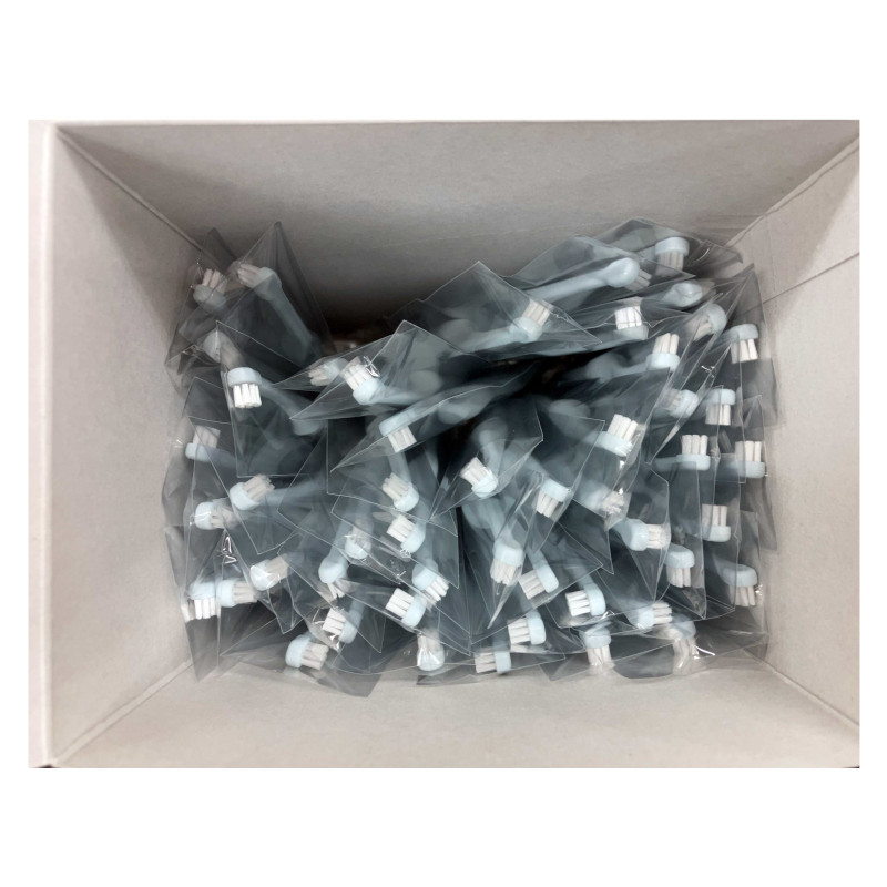 ミントブルー:爽やかなカラーと扱いやすいサイズ。小型犬や細かな歯みがきケアに便利な業務用ミニブラシ。