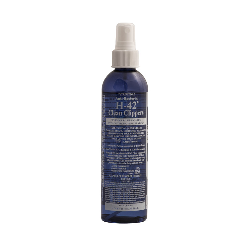 替刃をバリカンに装着し、スイッチを入れた状態でH-42を刃先に吹きかけてください。刃と刃のあいだに溜まった目に見えない皮脂や汚れを洗い流します。