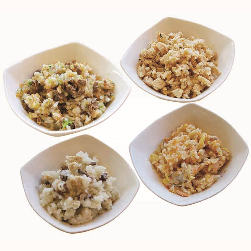 | 素材 | 【原材料】 鶏胸肉、米、鶏砂肝、キャノーラ油、卵殻カルシュウム、ローズマリー 【エネルギー】 約243kcal |