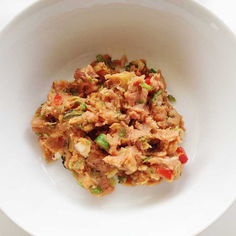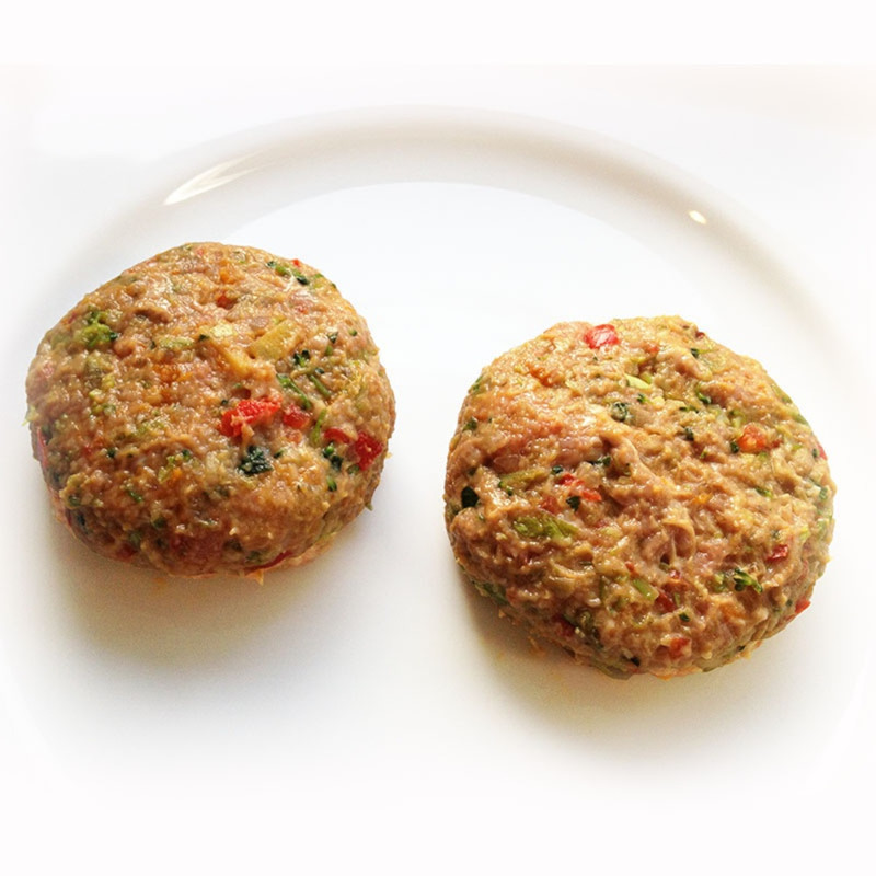 見違えるような元気のために。グラスフェッドのオージービーフ(牧草だけを食べて育った肉牛)の赤身を丁寧に挽き、消化しやすく調理した数種の野菜を閉じこめて、ハンバーグパティにしました。