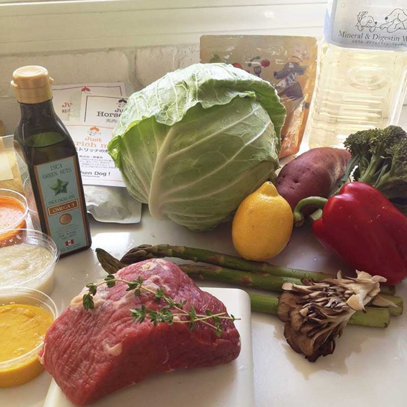 | 素材 | 【原材料】 牛肉、きゃべつ、パプリカ、かぼちゃ、薩摩芋、トマト、小松菜、舞茸、卵黄、りんご、ココナッツオイル、グリーンナッツオイル、リンゴ酢、ローズマリー 【エネルギー(1個当たり)】 約110kcal |