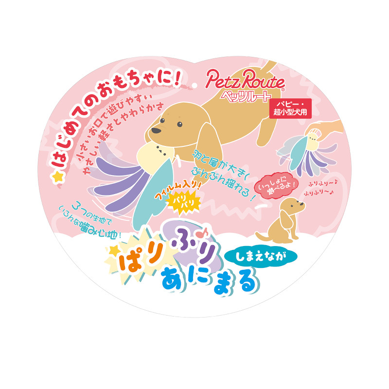 軽くて小さいお口でもくわえやすい細長いしっぽとパリパリ音の鳴る羽をぶんぶん振りまわして遊べます。
