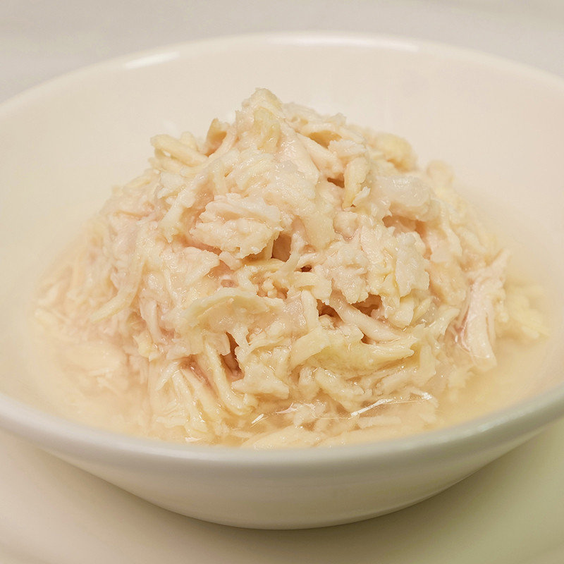 | 素材 | 【原材料】 鶏肉、調理水、米 【成分】 粗タンパク質:19.0%以上、粗脂肪:0.2%以上、粗繊維:1.0%以下、粗灰分:3.0%以下、水分:80.0%以下 【エネルギー】 77.35Kcal/100g |