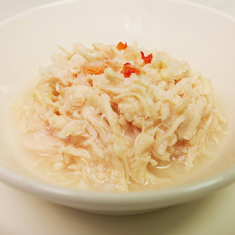 | 素材 | 【原材料】 鶏肉、調理水、小エビ、米 【成分】 粗タンパク質:15.0%以上、粗脂肪:0.2%以上、粗繊維:1.0%以下、粗灰分:3.0%以下、水分:83.0%以下 【エネルギー】 67.03Kcal/100g |