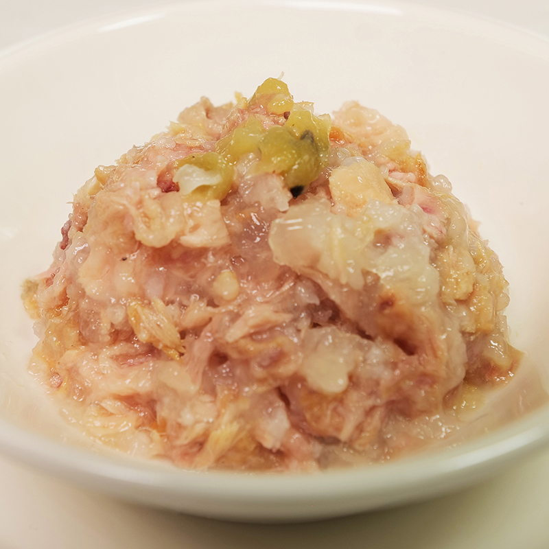 | 素材 | 【原材料】 マグロ、ゲル化溶液、キウイ、米 【成分】 粗タンパク質:12.0%以上、粗脂肪:0.10%以上、粗繊維:1.0%以下、粗灰分:3.0%以下、水分:84.0%以下 【エネルギー】 59.08Kcal/100g |