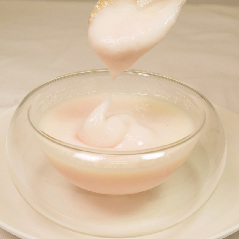 | 素材 | 【原材料】 調理水、鶏肉、タピオカ澱粉、グアーガム、キサンタンガム、ビタミンE 【成分】 粗タンパク質:10.0%以上、粗脂肪:0.15%以上、粗繊維:1.0%以下、粗灰分:3.0%以下、水分:90.0%以下 【エネルギー】 45.47Kcal/100g |
